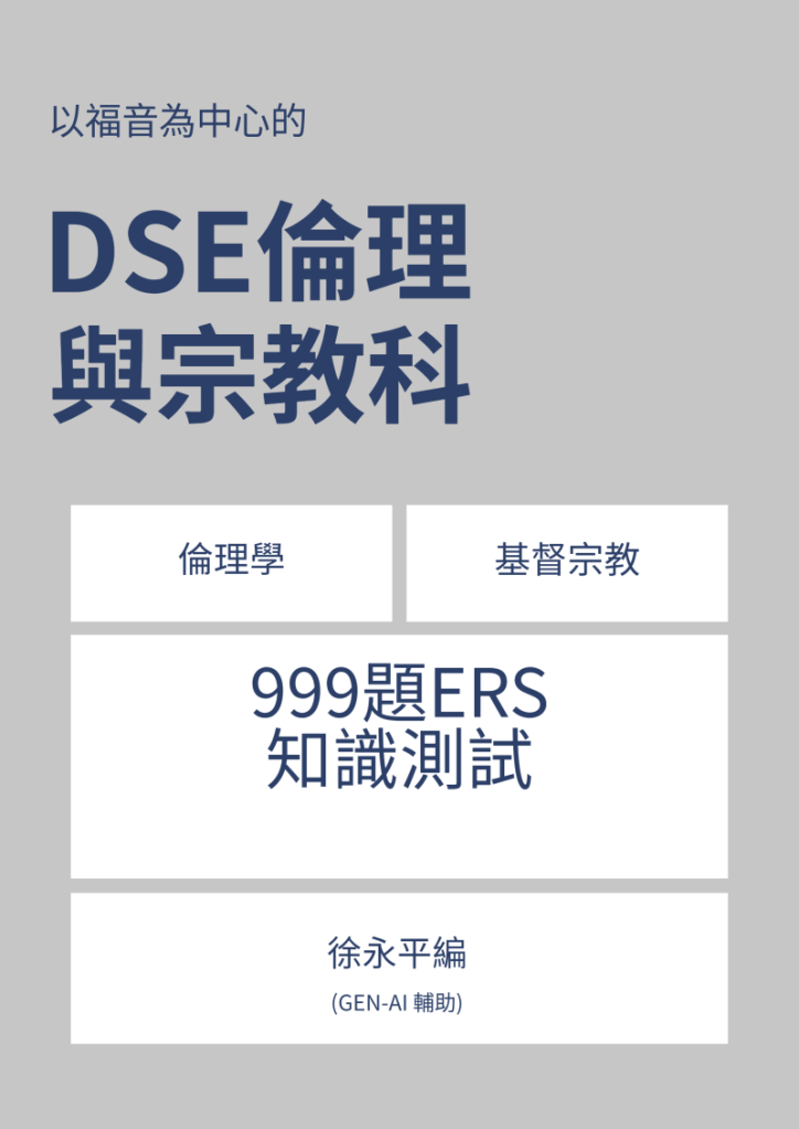 ERS999 is a problem-based learning tool for mastering the HKDSE Ethics and Religious Studies (Christianity) curriculum. At the heart is a set of 999 MCQs completely aligned to the curriculum framework of the Curriculum and Assessment Guide (2024) published by the Education Bureau HKSARG. At the same time, the developer has also analyzed all actual ERS test questions and graders’ feedback from 2014-2024. ERS999 is designed to help learners review, discuss, and deeply reflect on the prescribed syllabus from a Gospel-centric Christian worldview.